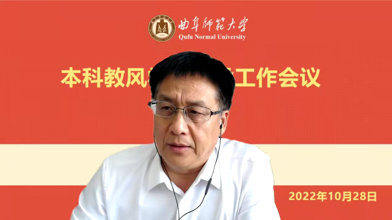 曲阜师大新闻中心讯(通讯员:郭智辉 摄影:刘萌) 10月28日上午,曲阜师大通过线上会议方式召开本科教风学风建设工作交流会。学校党委副书记李志红,党委副书记卢国强,党委常委、副校长胡凡刚、党委常委、宣传部部长孙祥广出席会议。