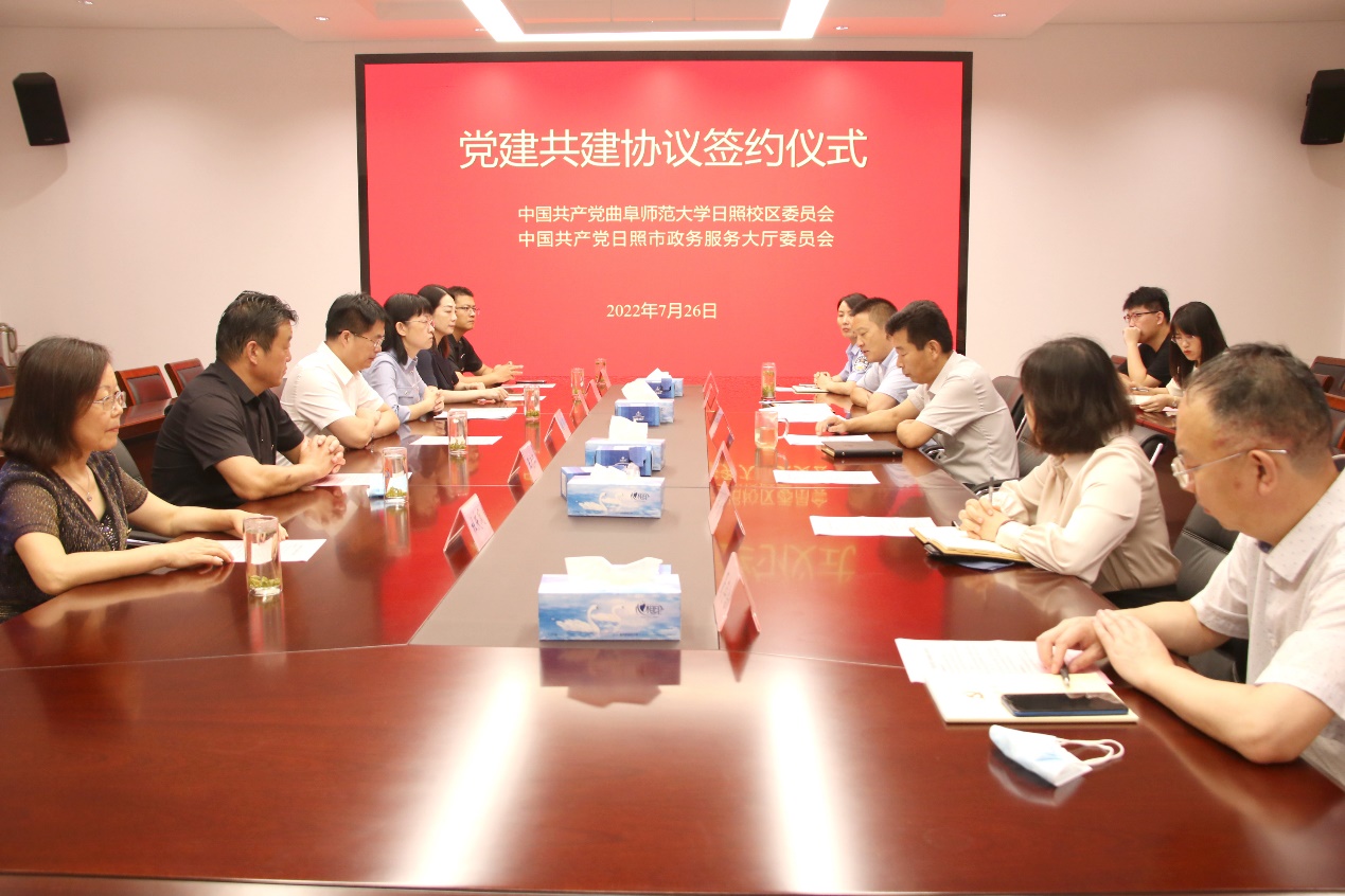 曲阜师大新闻中心讯(通讯员:尹哲睿)7月26日上午,大发平台日照校区党委与日照市政务服务大厅党委举行党建共建签约暨揭牌仪式。学校党委常委、副校长胡凡刚,日照市行政审批服务局党组书记、局长范丰华出席活动,日照校区办公室主任魏伟,日照校区党委、日照市政务服务大厅有关同志参加活动。仪式由日照市行政审批服务局党组成员、市政务服务中心主任、大厅党委书记石杰主持。