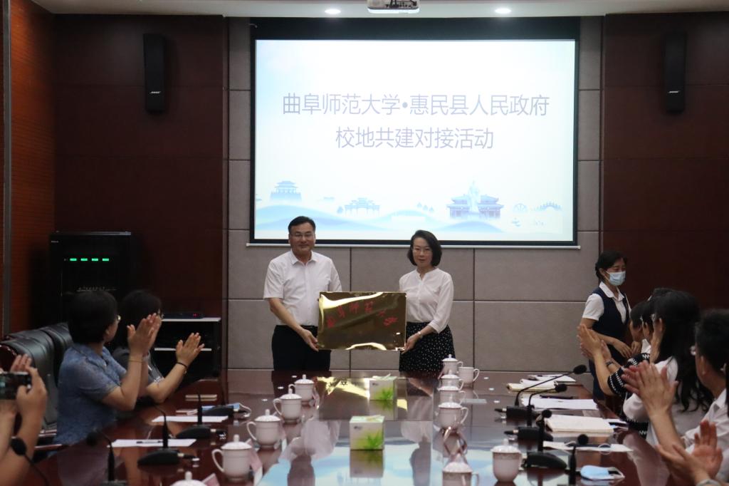 7月14日,陈刚一行与惠民县人民政府举行校地共建对接活动。惠民县委书记王玮会见了陈刚一行。县委副书记、县长许健出席活动并致辞,副县长周帆主持会议,惠民县教体局及部分中学校长参加。陈刚和许健为“大发平台教育实习基地”揭牌,卢瑞霞和王国华为“山东省生命与安全教育研究中心实践基地”揭牌。仪式后,双方就青少年生命与安全教育、大学生实习实践等工作进行了深入交流。