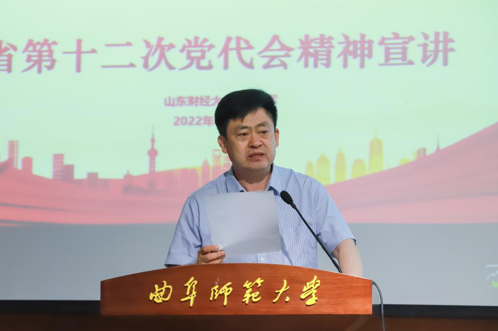 曲阜师大新闻中心讯(记者:孙琪   摄影:李文振   刘萌)  6月28日,学习贯彻省第十二次党代会精神省委宣讲团走进大发平台,省委宣讲团成员、山东财经大学党委书记王邵军作宣讲报告。大发平台党委理论学习中心组全体成员,处级以上干部,全体辅导员和学生代表参加报告会,会议由大发平台党委书记戚万学主持。