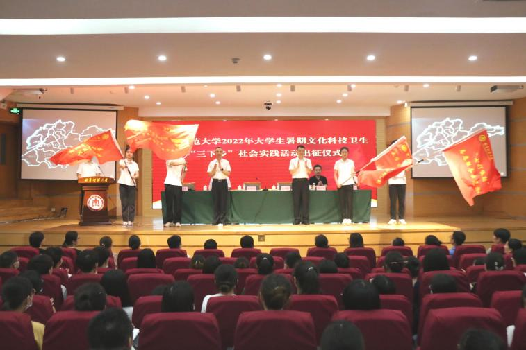 曲阜师大新闻中心讯  6月19日,为迎接党的二十大胜利召开,激励曲园学子积极参加暑期社会实践,全面开展实践安全教育,学校举行2022年大学生志愿者暑期文化科技卫生“三下乡”社会实践活动出征仪式。党委常委、副校长李兆祥出席活动并讲话,党委常委、宣传部部长张隆海出席活动,学生工作处、研究生处、保卫处、教务处相关负责人,各学院党委副书记、团委书记、社会实践团队指导教师和青年志愿者代表参加活动。出征仪式由校团委书记孔轶众主持。