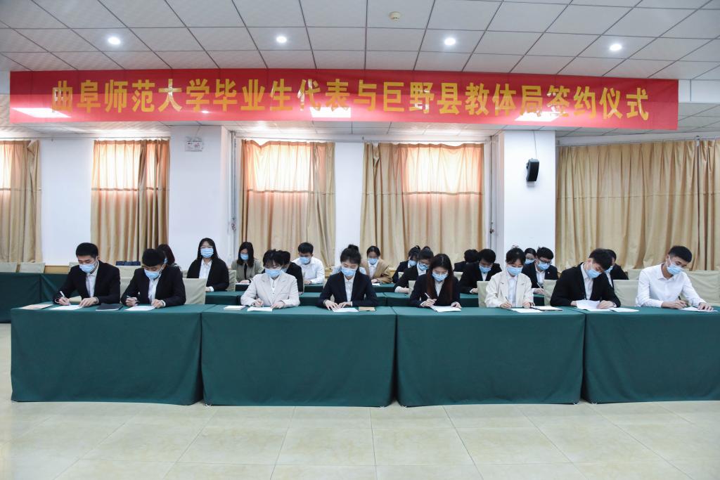 本次会上,此前已成功被巨野教育系统和歌尔股份有限公司录取聘用的曲阜师大2022届毕业生代表,现场与用人单位签订了就业协议书。