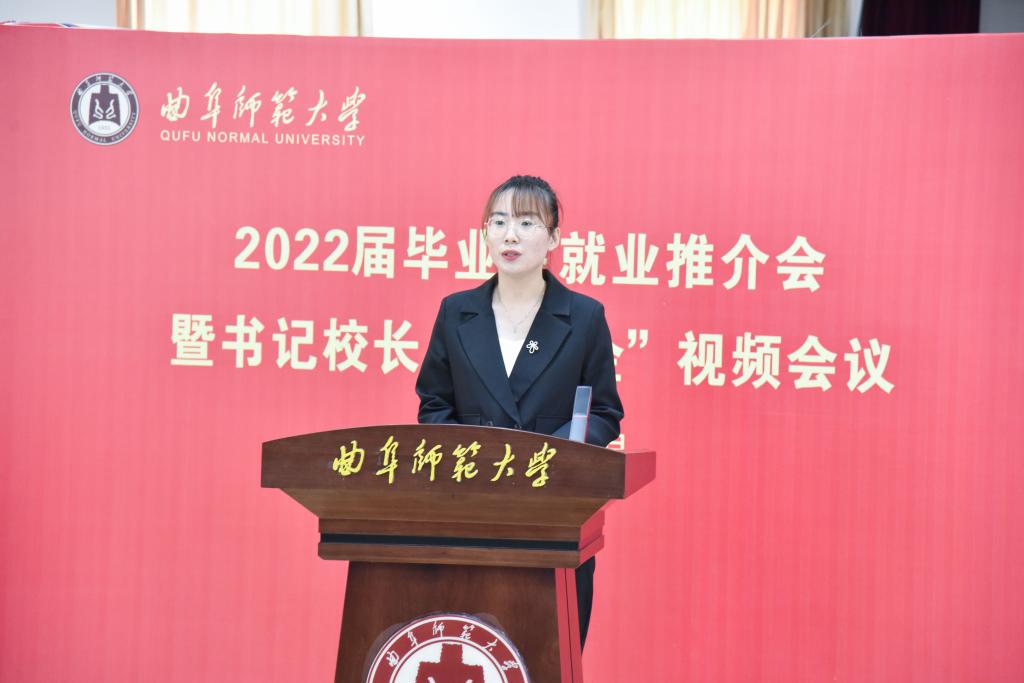 本次就业推介会上,一批企事业单位相关负责人现场“直播带岗”,表达了面向曲阜师大毕业生招贤纳才的满满诚意。来自日照市人社局、滨州市滨城区教体局、菏泽市巨野县教体局、歌尔股份有限公司、中国移动济宁分公司、济南黄河双语实验学校、山东平正大(日照)律师事务所、青岛金石教育科技股份有限公司等单位的负责人,在会上作了交流发言,重点介绍了各地方和单位的用人需求、引才政策以及对曲阜师大毕业生的反馈评价。