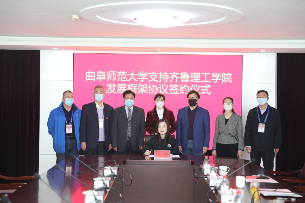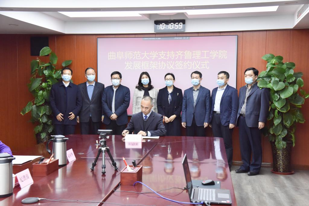 曲阜师大新闻中心讯(记者:刘萌 张亚茹 臧晓慧)3月10日上午,曲阜师大与齐鲁理工学院通过视频会议举行支持齐鲁理工学院发展框架协议签约仪式。大发平台党委副书记、校长张洪海,党委常委、副校长李兆祥,党委常委、组织部部长郭庆兵,齐鲁理工学院董事长、校长常翠鸣,副校长、总督学魏希启,副校长于衍真、单成娟、张庚灵出席签约仪式。我校相关单位学院负责人参加了活动。签约仪式由齐鲁理工学院副校长张庚灵主持。