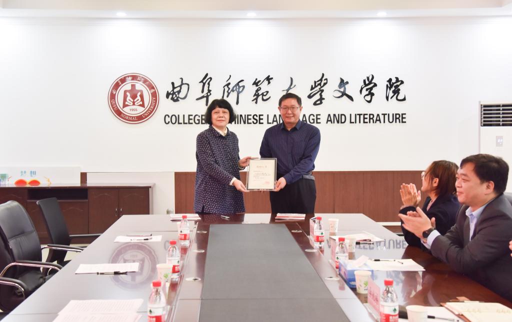 仪式上,国内合作处孔宪福代表孔子教育基金会与夏静签订捐赠协议,接受捐赠牌并向夏静教授颁发捐赠证书。