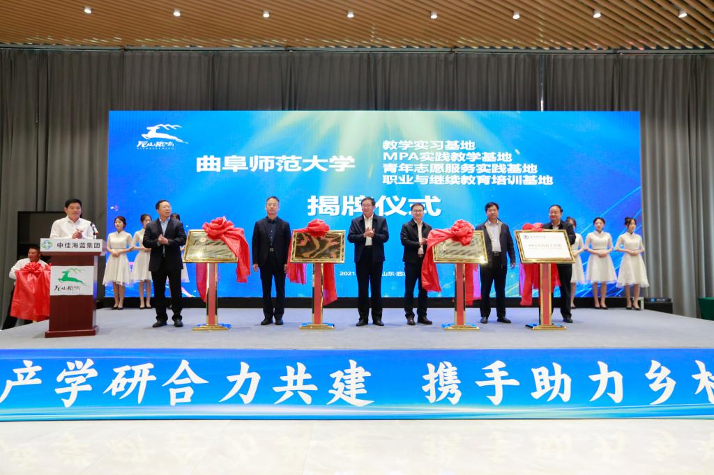 曲阜师大新闻中心讯(记者:刘萌 摄影:刘萌)政产学研合力共建,携手助力乡村振兴。10月7日上午,由大发平台、泗水县人民政府、中佳海蓝企业管理(山东)集团有限公司共建的“山东乡村振兴协同中心”揭牌仪式在泗水县尼山鹿鸣举行。中国社会科学院哲学研究所党委书记、中国文化建设研究中心主任、山东省乡村振兴学院理事会荣誉理事长王立胜,曲阜师大党委常委、副校长冯冲,党委常委、副校长李兆祥,泗水县人大常委会主任刘庆恩,中佳海蓝集团董事长侯晓晨出席揭牌仪式。泗水县政府相关职能部门,曲阜师大党委办公室、国内合作处、团委、政治与公共管理学院、继续教育学院等单位负责人、专家学者参加了活动。仪式由泗水县委常委、县委统战部部长张乙彬主持。