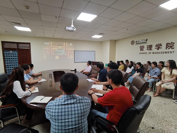 “党的百年华诞是中国共产党和中华民族的高光时刻!”管理学院党委书记刘进表示,基层党组织要真正发挥好战斗堡垒作用,带领党员师生牢记初心使命,深入学习党的历史,学懂马克思主义中国化最新理论成果,悟透习近平新时代中国特色社会主义思想,深刻理解马克思主义为什么行,中国共产党为什么能,中国特色社会主义为什么好,真正做到学党史、悟思想、办实事、开新局。