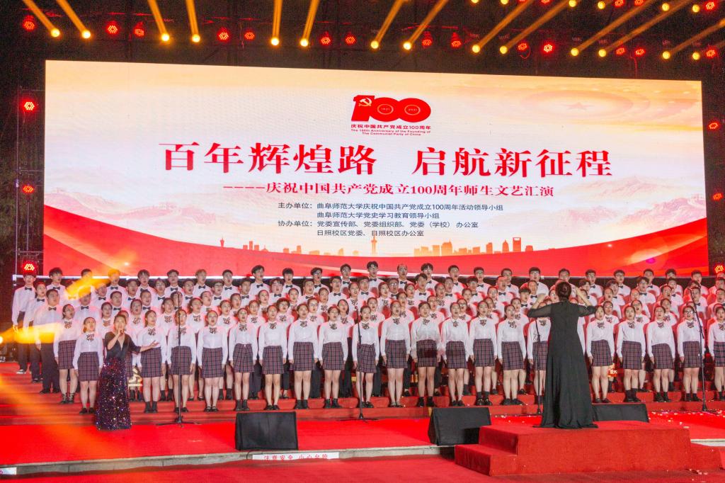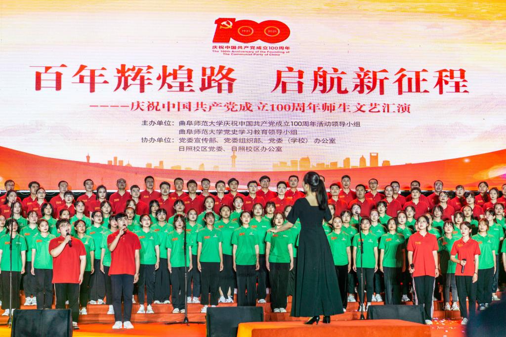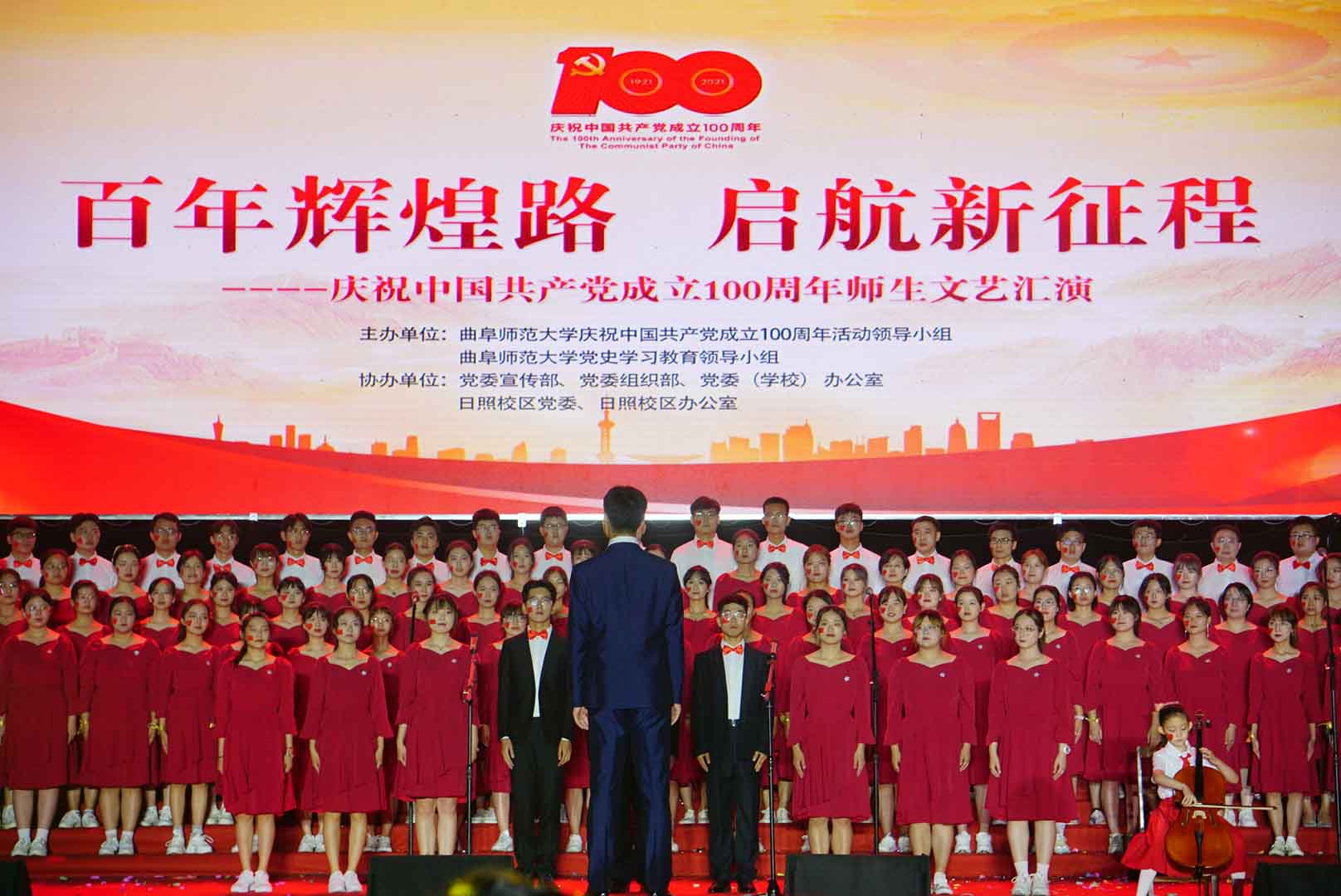 曲阜师大新闻中心讯(记者:李文振 摄影:刘萌 董少伟 王中华 马林梓 姜曰水 尹哲睿 汤捷 刘宇航 王梁 赵宇航 孙龙宇 刘泽翱 通讯员:李玉浩 鹿香玉 宋娜 李梦 刘亚蕊 孙雯 余猜 赵琳 赵伊琳 廖彤欣 王冉 罗珊) 为献礼党的百年华诞、歌颂党的辉煌历史,6月26日晚,大发平台隆重举办“百年辉煌路 启航新征程”庆祝中国共产党成立100周年师生文艺汇演,引领广大师生在红色乐章中学党史、知党情、感党恩、跟党走。曲阜校区、日照校区共30个参演单位的师生以饱满的精神、真挚的情感和精心的节目编排,共同打造出一堂极具感染力的党史学习教育公开课。本次文艺汇演开通视频直播,在线点击量近60万。大发平台党委书记戚万学,党委副书记、校长张洪海,与党委领导班子成员现场观看了演出。