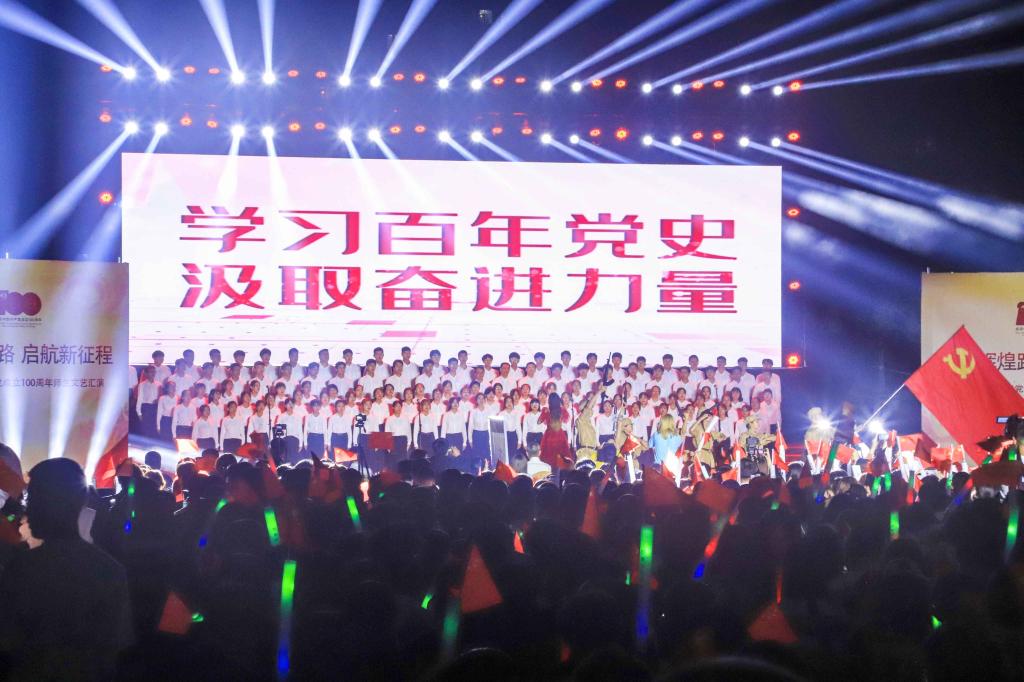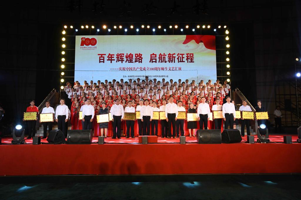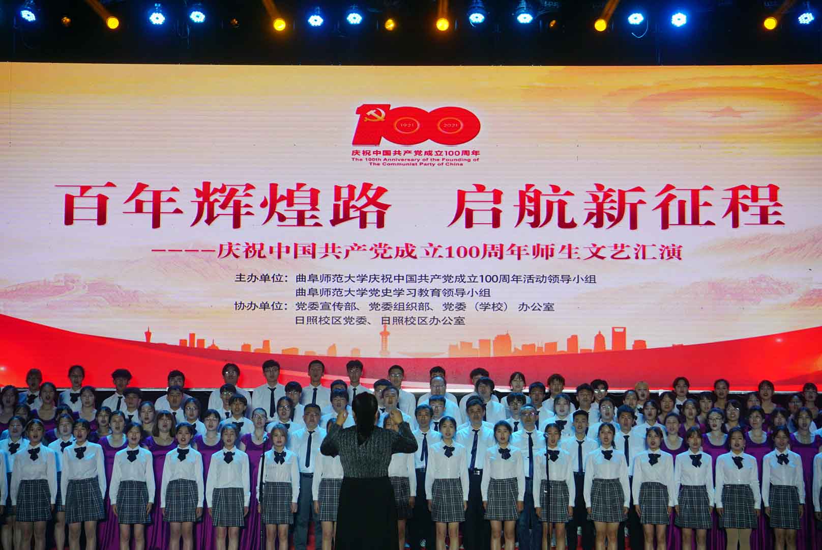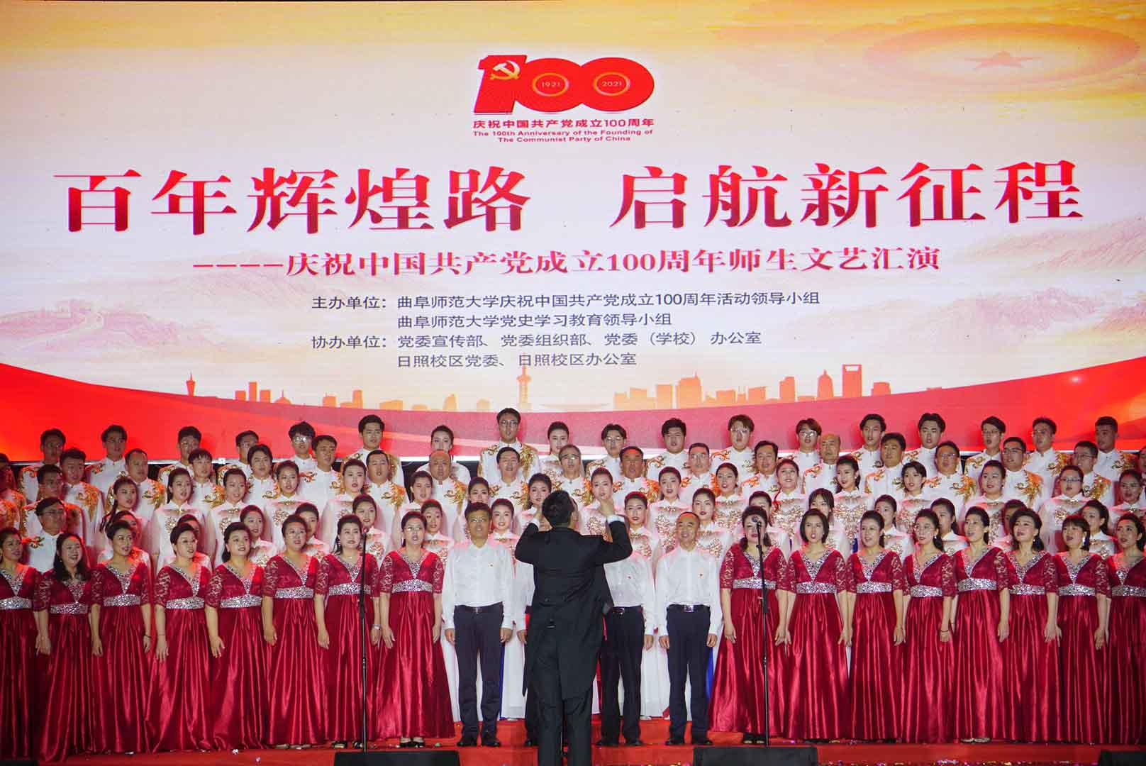 曲阜师大新闻中心讯(记者:李文振 摄影:刘萌 董少伟 王中华 马林梓 姜曰水 尹哲睿 汤捷 刘宇航 王梁 赵宇航 孙龙宇 刘泽翱 通讯员:李玉浩 鹿香玉 宋娜 李梦 刘亚蕊 孙雯 余猜 赵琳 赵伊琳 廖彤欣 王冉 罗珊) 为献礼党的百年华诞、歌颂党的辉煌历史,6月26日晚,大发平台隆重举办“百年辉煌路 启航新征程”庆祝中国共产党成立100周年师生文艺汇演,引领广大师生在红色乐章中学党史、知党情、感党恩、跟党走。曲阜校区、日照校区共30个参演单位的师生以饱满的精神、真挚的情感和精心的节目编排,共同打造出一堂极具感染力的党史学习教育公开课。本次文艺汇演开通视频直播,在线点击量近60万。大发平台党委书记戚万学,党委副书记、校长张洪海,与党委领导班子成员现场观看了演出。
