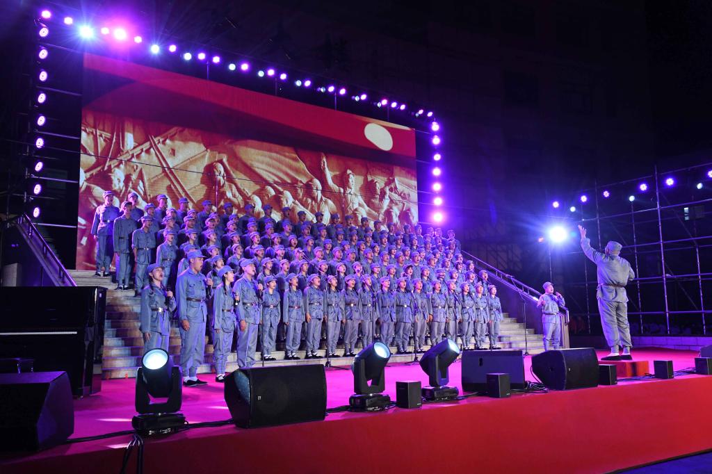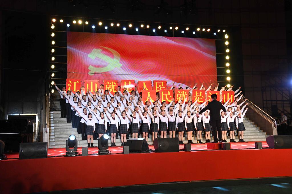 “唱支山歌给党听,我把党来比母亲”……随着满头银发的老教师和稚嫩可爱的小朋友一起唱响经典的旋律,本次演出正式拉开帷幕。随后,一首首动人的红歌、一段段深情的朗诵,伴着曲园的儒风海韵回荡耳畔、直抵人心:《南湖的船党的摇篮》《延安颂》《解放区的天》,歌咏了党的峥嵘岁月和光辉历程;《四渡赤水出奇兵》《红星照我去战斗》《映山红》,让人追忆起红军长征的伟大与壮烈;《毕业歌》《保卫黄河》《中国人民志愿军战歌》,激发着保家卫国的豪情壮志;《红梅赞》《英雄赞歌》《弹起我心爱的土琵琶》,唱出了对先烈的缅怀和对英雄的崇敬;《歌唱祖国》《爱我中华》《国家》《江山》,抒发了浓厚的家国情怀;《社会主义好》《光荣与梦想》《把一切献给党》《伟大的中国伟大的党》,表达了对党的感恩与忠诚;《不忘初心》《走向复兴》《在灿烂阳光下》《新时代新征程》,讴歌了中国共产党带领中华民族走向伟大复兴的使命担当。