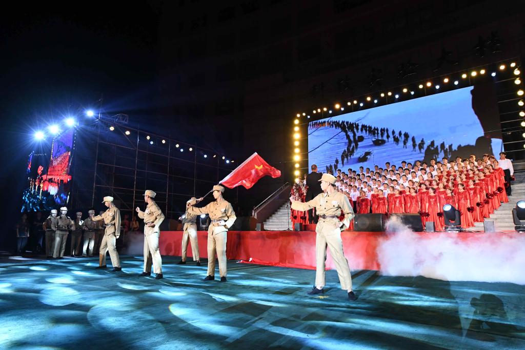 演出最后,学校党委领导班子走上舞台带领现场师生齐声高唱《国际歌》。伴着全场师生挥舞起手中的党旗、国旗,共同唱响《没有共产党就没有新中国》,本次汇演圆满落幕。