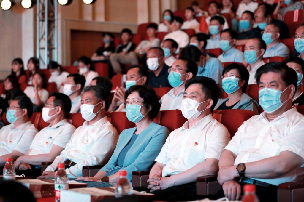 中共日照市委书记张惠,市政协主席王斌以及日照市委、市人大、市政府、市政协班子成员,日照军分区、市中级法院、市检察院、各有关单位副市级领导干部,市直有关部门单位主要负责同志,市委党史学习教育领导小组成员等近200人现场观看;大发平台党委书记戚万学、党委副书记扈庆学、党委常委、副校长李兆祥、党委常委、宣传部长张隆海及师生代表一同观看演出。