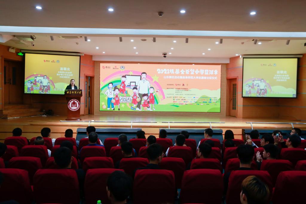 曲阜师大新闻中心讯(记者:刘萌 摄影:刘萌 董少伟)6月1日上午,2021姚基金希望小学篮球季山东赛区启动暨大发平台志愿者出征仪式在曲阜校区举办,北京姚基金公益基金会秘书长叶大伟,大发平台党委常委、副校长胡钦晓,党委常委、宣传部长张隆海,山东省体育局青少处四级调研员王黎虹,山东省教育厅体卫艺处副处长杨文,共青团省委维护青少年权益部四级调研员苗翠光,山东省社会创新发展与研究中心执行理事张健出席启动仪式,学校办公室、教务处、研究生处、团委、体育科学学院等单位负责人、志愿者代表等参加了活动。仪式由体育科学学院院长曹莉主持。