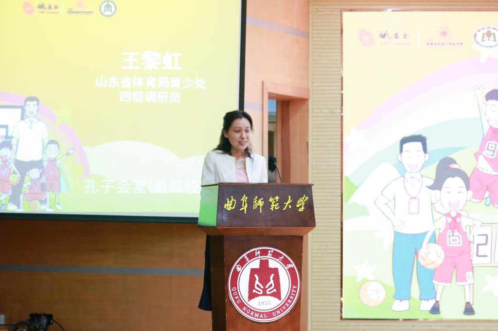 王黎虹在致辞中对出征仪式的举行表示祝贺,对社会各界给予山东青少年体育事业发展的支持表示感谢,希望通过开展此次姚基金篮球季活动,更好地加强青少年体育运动,推动乡村地区体育事业快速发展。