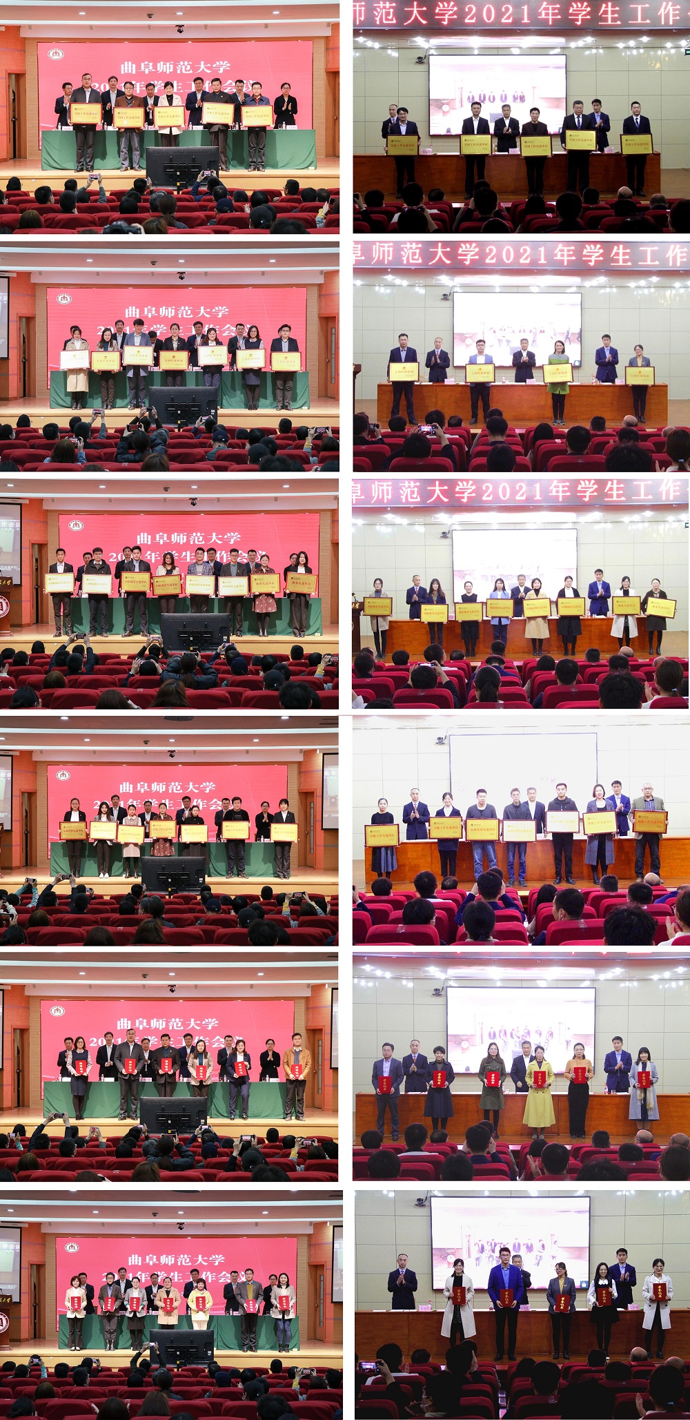 学生工作部部长姜美颖向大会作了2020年学生工作报告。过去一年学生工作系统在思想政治教育、学生管理服务、毕业生就业工作、创新创业工作、资助工作、国防教育、心理健康教育、美育与劳动教育、团学改革与校园文化活动建设等多方面工作卓有成效,汇聚了曲师经验。新的一年,学生工作系统将以“四史”教育等工作为重点,切实提高思想政治教育的时效性;以学生工作信息化建设等工作为重点,推进学生管理服务精细化;以加强职业生涯规划和创新创业项目培训等工作为重点,搭建学生综合发展平台。