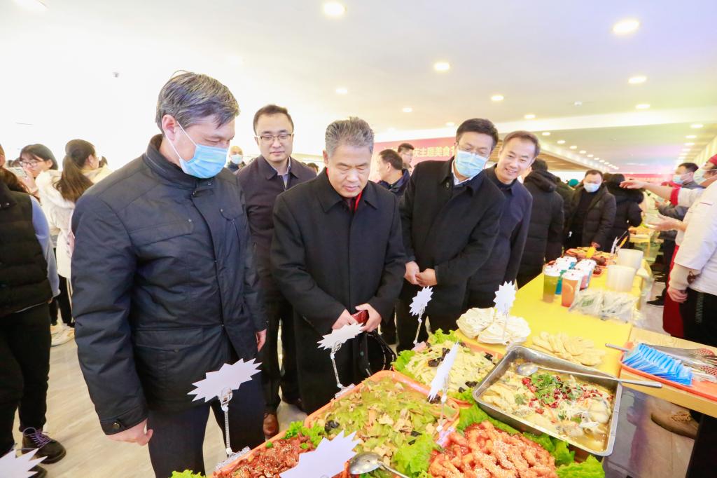 党委副书记扈庆学,纪委书记徐思生,副校长卢国强来到活动现场,与师生共同感受美食氛围。美食节饭菜受到广大师生的一致好评,走进餐厅,师生并肩接踵在各个美食摊前驻足。精美小炒、果蔬、水饺面食,还有来自后勤党委惠农村镇蔬菜基地的新鲜瓜果蔬菜一应俱全。