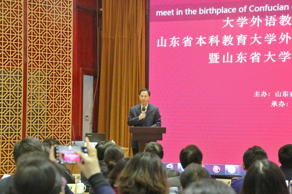 12月21日,山东省本科教育大学外语教学指导委员会第一次全体会议暨山东省大学外语教育专业委员会年会在我校隆重召开。我校副校长辛杰教授出席大会并讲话,教育部高等学校大学外语教学指导委员会副主任委员、广东外语外贸大学副校长刘建达教授,教育部高等学校大学外语教学指导委员会委员、山东省大学外语教育专业委员会会长崔校平教授应邀出席大会,来自山东省本科院校的100余位大学外语负责人、专家学者以及出版专家欢聚一堂,共同探讨大学外语发展。山东省本科教育大学外语教学指导委员会主任委员、公共外语教学部主任王广成教授主持了本届年会。