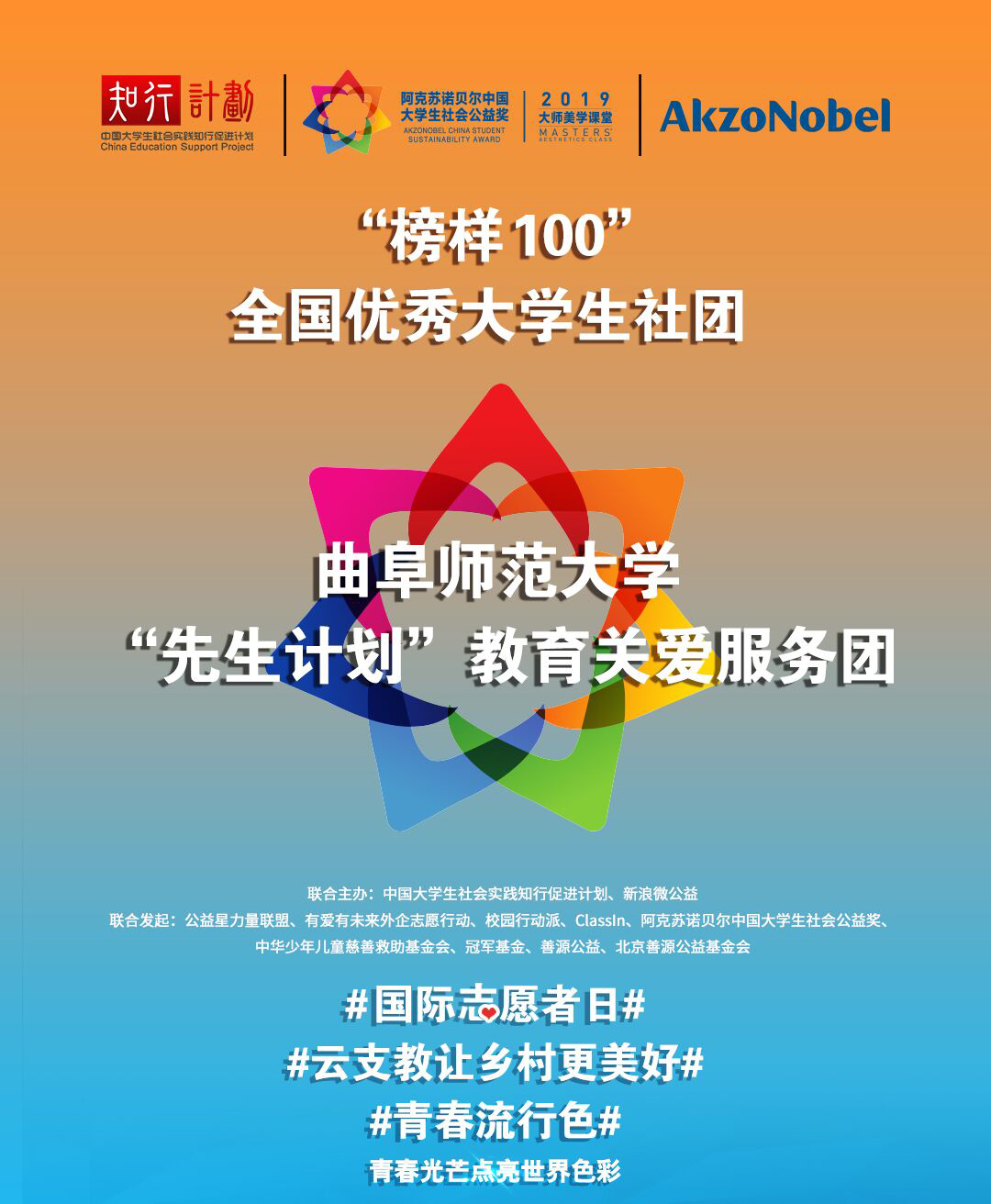 我校“先生计划”教育关爱服务团获评“榜样100”全国优秀大学生社团