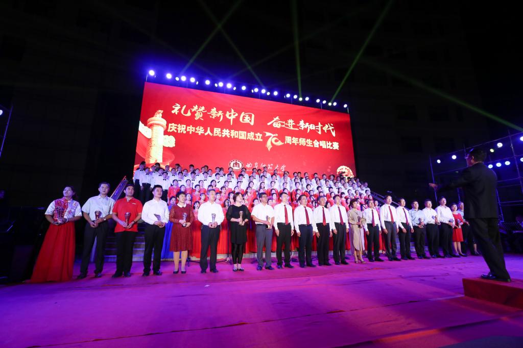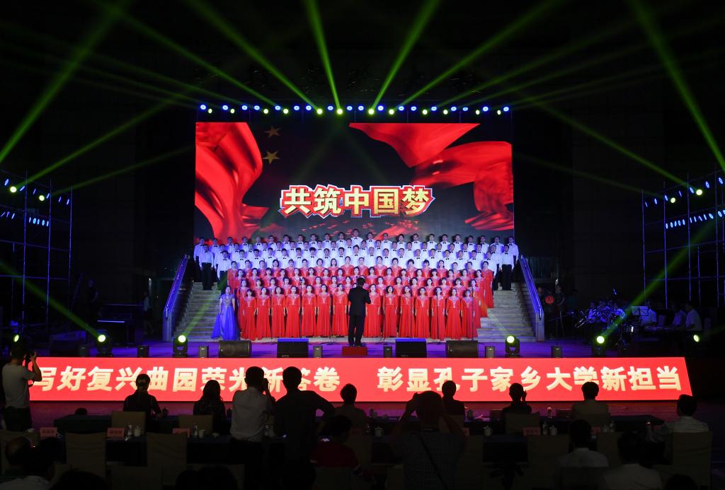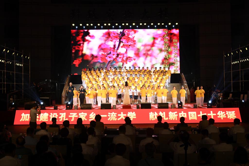 在礼赞新中国的歌声中,曲园人不忘初心,在奏响新时代奋进的旋律中,曲园人牢记使命,必将以加快建设孔子家乡一流大学的新担当、新成就向伟大祖国献礼!