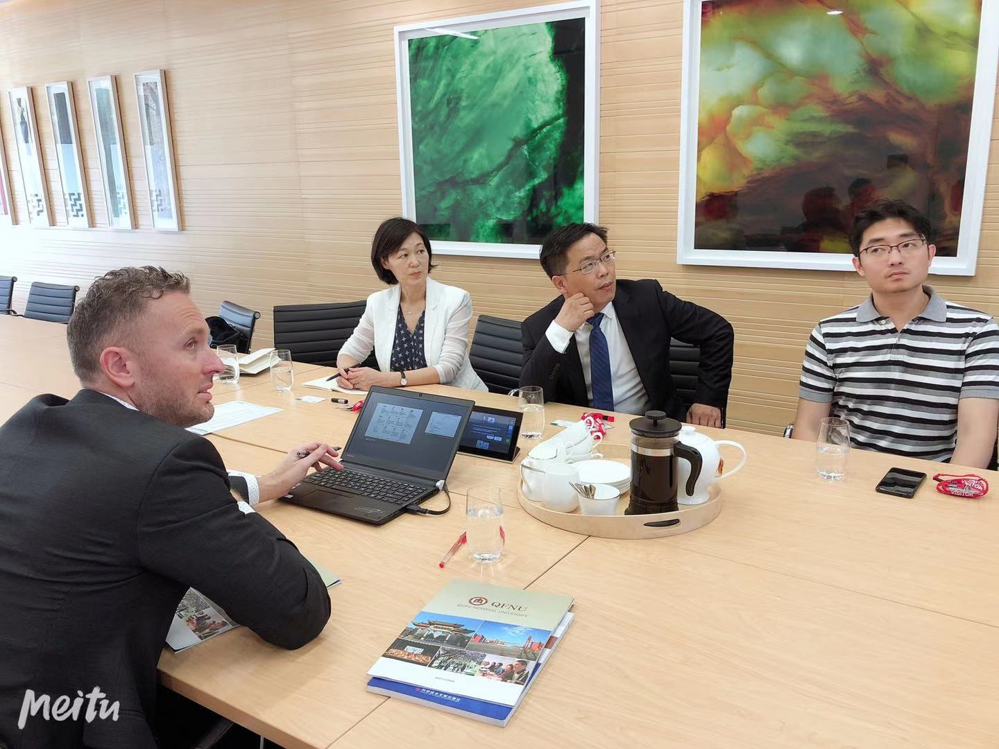 密苏里州立大学副校长贝克博士、校长助理布莱德博士以及密苏里州立大学中国代表刘丹丹等人参加了会见,会谈后双方续签友好合作协议,并就教师培训、本硕3+1+1TESOL、硕士1+1+1等项目的开展进行了磋商。