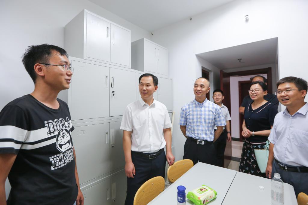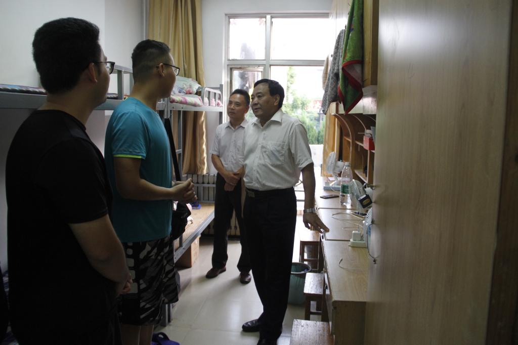 9月7日,我校2019级新生入学报到期间,校长张洪海、党委副书记扈庆学、副校长杨冰、冯冲、辛杰,分别深入两校区宿舍和食堂走访,看望慰问新同学。学校办公室、日照校区管理办公室、学生工作处、研究生处、后勤管理处等部门负责人参加走访活动。