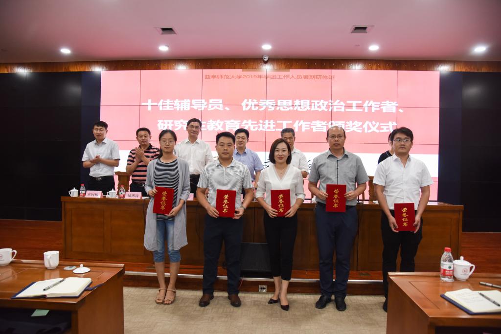 研修班上,夏云杰宣读了我校2018年度十佳辅导员、优秀思想政治工作者、研究生教育先进工作者获奖名单。