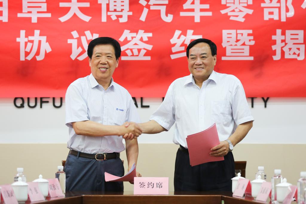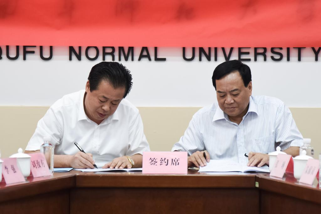 省委政策研究室机关党委专职副书记秦廷军,济宁市委统战部副部长、市工商联党组书记王成玉,曲阜市委常委、组织部部长孙希忠,曲阜市委常委、统战部长李强,以及我校有关单位与部门负责人出席签约仪式。仪式由学校国内合作处处长孔宪福主持。