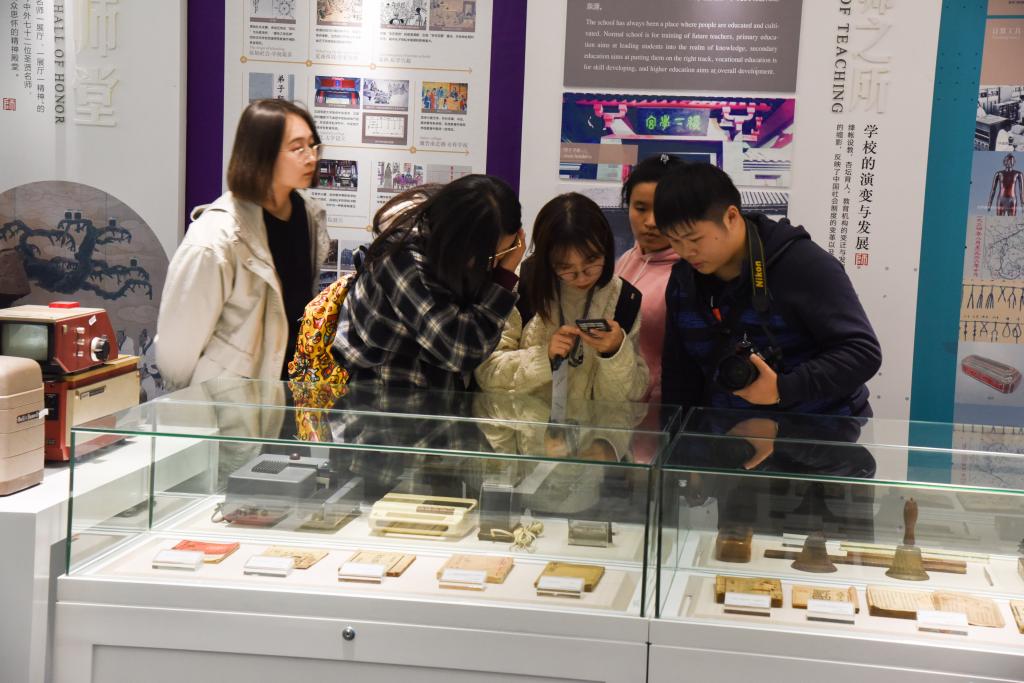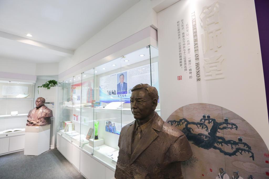 正物以明史,透物而见人。庄重的展厅中,孔府孔子行教像、清代《孔子圣迹图》、善本《论语》、“子在川上”雕塑等展品,辉映着“至圣先师”孔子的仁师风采与教育思想。唐代的文宣公府藏古琴、明代的殿试状元卷复制件、清代《历代史略》、民国时期的教鞭和算盘、建国后不同时期的教材教具与教师资格证……一系列文物与史料,勾勒着教育发展的源远流长、变迁演进。鲁迅先生的任教聘书、陶行知先生的印章和信札、叶圣陶先生的手稿墨迹、“时代楷模”黄大年教授的工作手稿与曾用仪器、“红色理论家”郑德荣教授的记录本与代表作……一份份实物与图文,彰显着名师大家的“学高为师,身正为范”。