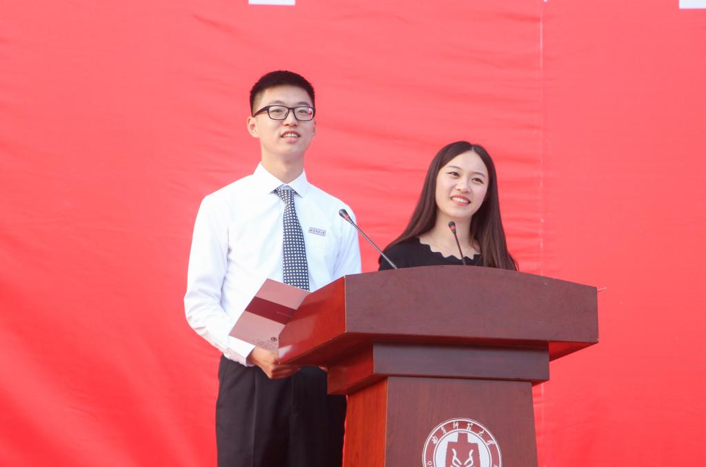 机器人挑战赛全国一等奖获得者竺山同学,国家大学生创新创业项目负责人王琳珊同学,作为学生代表在典礼上发言。