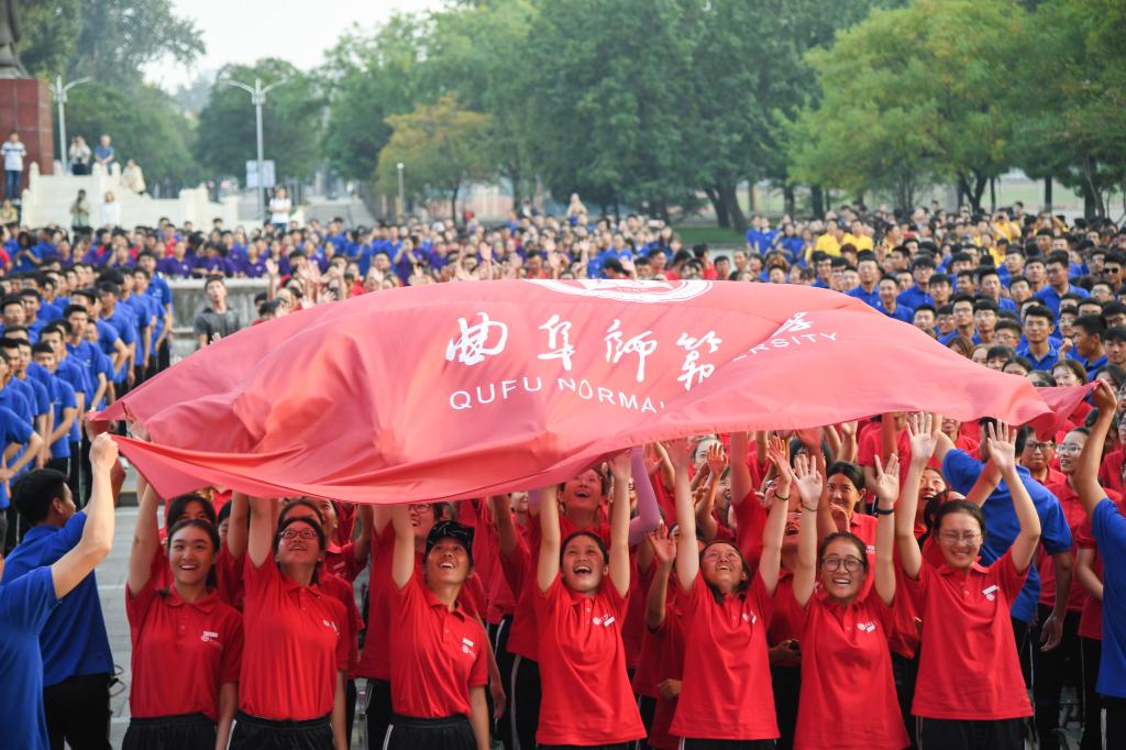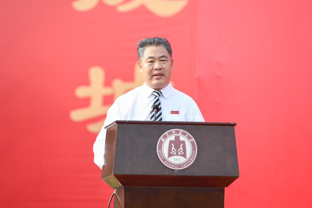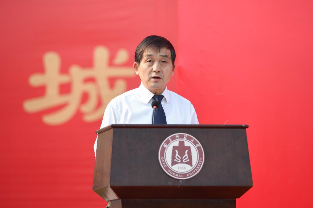 党委书记戚万学在典礼上致开学训词。戚万学指出,六十三年前的首次开学典礼上,“犹有洙泗遗韵,更加众志成城”的题词吹响了圣地学府远航的号角。六十三年后的今天,正逢习近平总书记视察曲阜五周年、全国教育大会刚刚胜利闭幕,曲园人在开学典礼上重温这十二个字的“创校宣言”,就是号召全校师生不忘初心、戮力同心、砥砺奋进,担负起孔子家乡百年学府建设的历史使命。他希望,曲园的每一位教师都应当好“传道”大先生,厚植文行忠信、潜心教书育人,守住三尺讲台,做好“四有”老师,传师道、树师风、守师魂,诲人不倦育英才;曲园的每一位同学都要深研“春秋”大学问,焚膏油以继晷,恒兀兀以穷年,学如不及、见善如不及,增知识、长见识、修德行,学而不厌成栋梁;全校所有党员干部均须融入“复兴”大时代,胸怀理想、心系师生,居之无倦、行之以忠,办实事、做好事、解难事,为政以德勇担当。“中华圣地,兹有斯文;大成气象,由此发轫。” 戚万学在训词中号召大家以尼山测峻、大海量深之精神,矢志为国弘文,朝着一流大学大步前进!