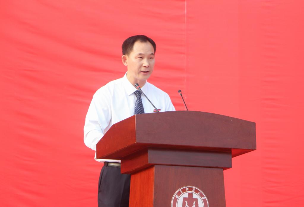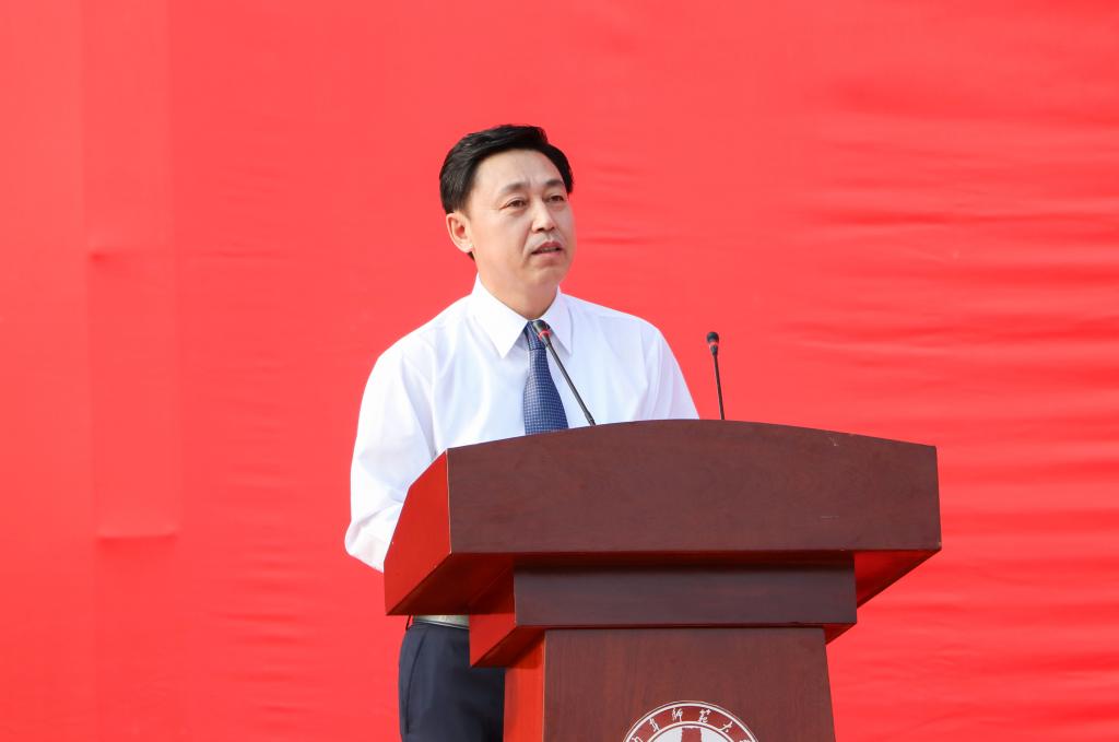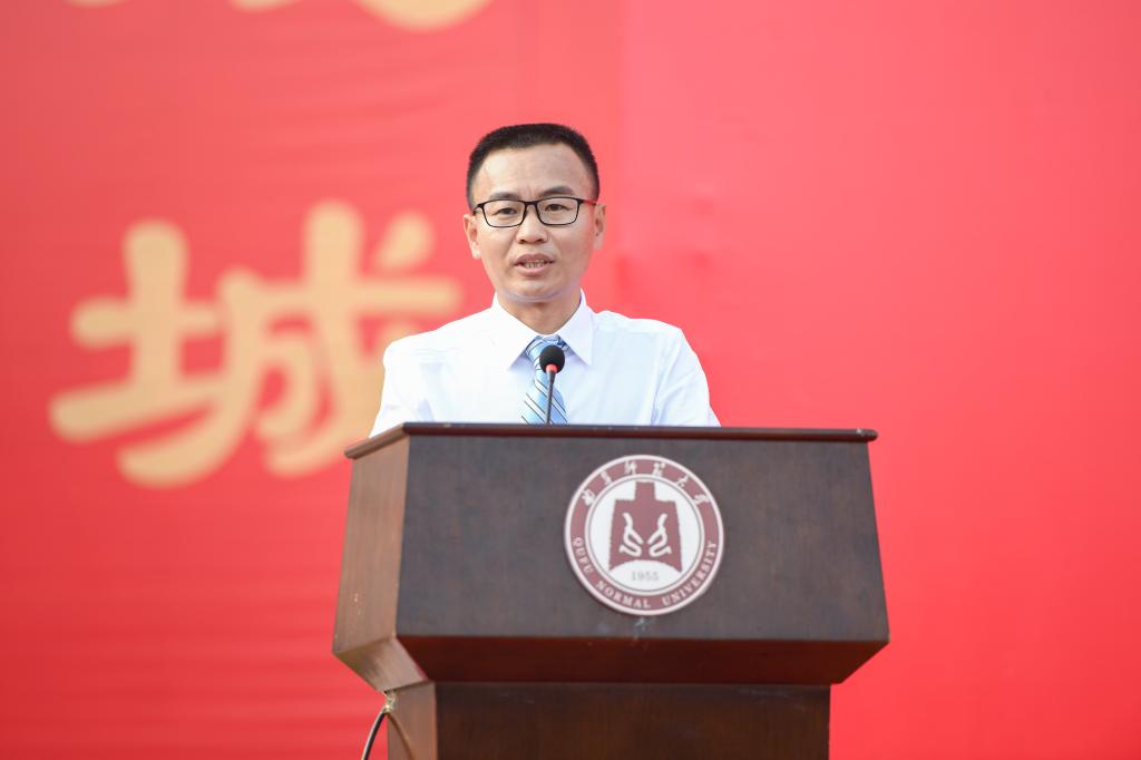 校长张洪海在典礼上作迎新讲话。张洪海首先对新同学们走进曲园开启大学的梦想之旅,表示最衷心的祝贺和最热烈的欢迎。他指出,在学校63年的光辉历程中,50万学子圆梦于此,成为各行各业尤其是教育界的栋梁之材。他希望全体新同学迈进曲园大门之后,既要继承曲园乐学笃行的光荣,更要践行先贤忘却一身济苍生的理想。张洪海在讲话中还介绍了我校生命科学学院97级杰出校友、清华大学博士生导师王一国教授在曲园好学、乐学的奋斗事迹,勉励新同学们在宁静中笃学砥砺、坚守初心,用如饥似渴的精神、滴水穿石的毅力、永不满足的追求,心无旁骛地汲取学养,潜心静气地追求真理,不断用知识丰富和完善自己。张洪海指出,大学时代是人生旅程中的一个加油站,对同学们成长成才成功至关重要;曲阜师大就是大家创造历史、实现人生价值的舞台,希望全体新同学以“海阔凭鱼跃,天高任鸟飞”的自信,在美丽曲园书写出青春激扬的绚烂篇章!