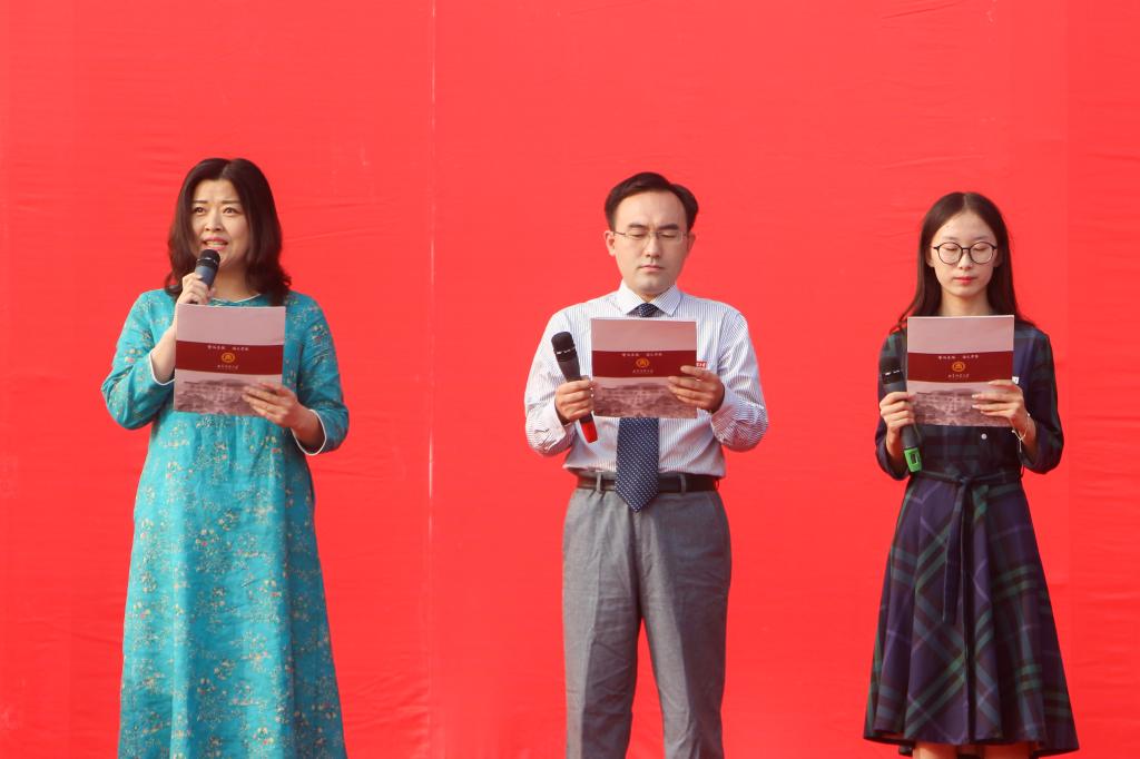 全国教育系统劳动模范、享受国务院特殊津贴专家章志敏教授,青年泰山学者宋立林教授,“青春国学荟”全国比赛特等奖获得者杨浔同学,在典礼上领诵《论语》。