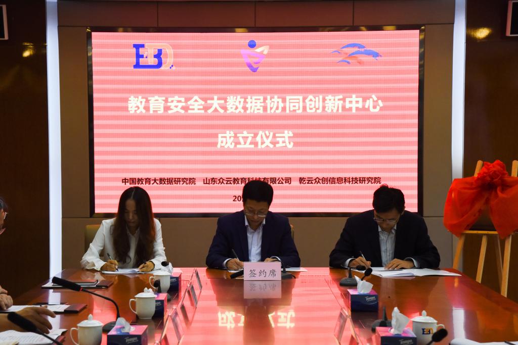 根据协议,中国教育大数据研究院与山东众云教育科技有限公司、乾云众创信息科技研究院有限公司开展产学研合作,共建教育安全大数据协同创新中心。协同创新中心致力于利用云计算、大数据、物联网、移动互联等技术手段,汇聚学生、家长、教师等行为活动数据及教育相关数据,通过数据共享、应用牵引、“云+”模式,探索解决教育安全事故频发、部门无法联动、事故不能预防等问题,从而为政府主管部门、相关组织及学生、家长等提供有价值的安全服务和数据服务。