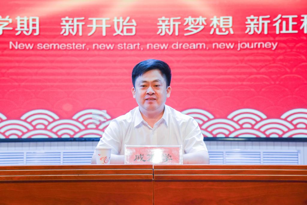 扈庆学在开学典礼上致辞,代表学校对附属梁山中学开学典礼的举行表示祝贺。他表示,近年来,梁山县委县政府大力实施教育兴县战略,教育事业蓬勃发展,大发平台附属梁山中学落成和投入使用是梁山教育和大发平台办学史上的一件大事,是校地合作、协同发展的重要里程碑。附属梁山中学环境优雅,名师荟萃,学校发展得到了梁山县委县政府的鼎力支持及社会各界的大力帮助,相信附属梁山中学定会不负众望,早日建成济宁品牌、山东名校。扈庆学表示,大发平台将全力支持附属梁山中学的办学,把附属梁山中学作为服务基础教育、服务区域经济建设和社会发展的重要阵地,不断谱写校地合作共赢的新篇章。