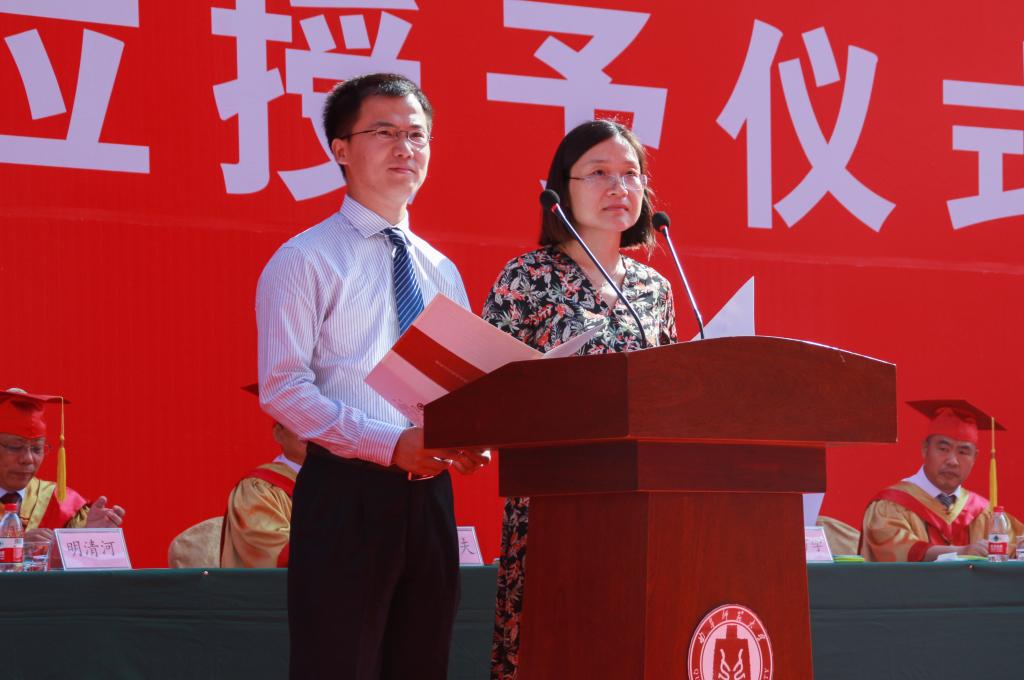 副校长、学位评定委员会副主席辛杰宣读了学位授予决定。根据《大发平台学士学位授予细则》《大发平台博士、硕士学位授予工作细则》,经学校学位评定委员会研究审议,共有7743名本科生获得学士学位,1261名研究生获得硕士学位、博士学位。