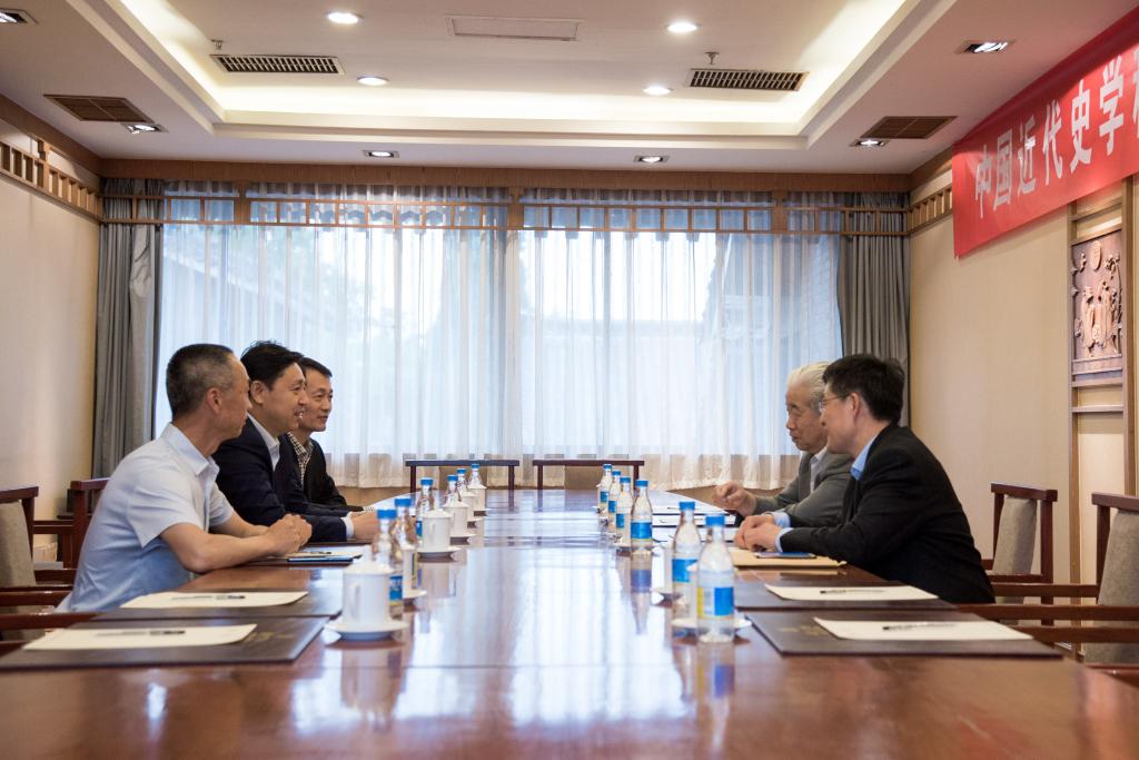 张洪海在座谈中介绍了我校近年来的事业发展成就、办学特色优势以及中国史一流学科建设情况,他表示张海鹏先生在史学研究领域学术造诣深厚、学术影响广泛,受聘成为我校特聘教授,对于学校的学科建设和人才队伍建设工作具有重要意义,希望张海鹏先生给予深入指导和大力支持。
