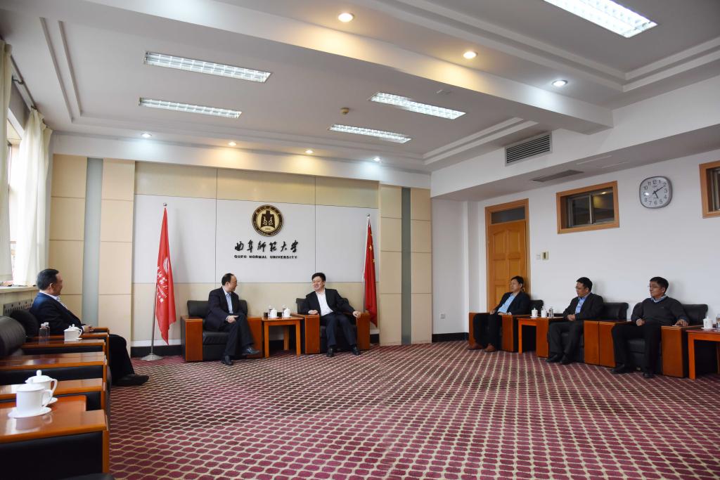 3月14日下午,枣庄学院党委书记曹胜强、校长李东来我校考察交流,党委书记戚万学、校长张洪海、副校长王继锁、副校长明清河会见了客人,主宾双方进行了深入座谈。