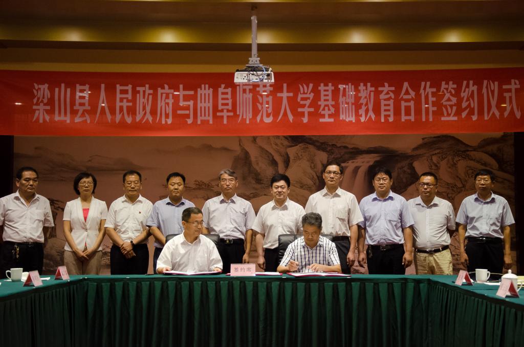 7月28日上午,我校与梁山县人民政府基础教育合作签约仪式在梁山县举行,根据此次签署的合作协议,校地双方将共建大发平台附属梁山中学。我校党委书记戚万学,副校长扈庆学,副校长夏云杰,梁山县委书记贾治阜,县委副书记、县长侯典峰,县委常委、县委办公室主任李士兵,县委常委、县委组织部部长王建,出席签约仪式。我校服务地方与对外合作办公室、梁山县教体局负责人参加仪式。签约仪式由梁山县副县长孙颖主持。