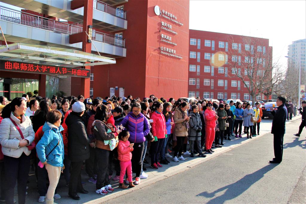 为迎接国际劳动妇女节的来临,让我校女教职工度过一个健康、快乐、充满意义的节日,3月8日下午,“丽人行-环曲园”第二届迷你马拉松徒步走活动在两校区同时举行。校长张洪海、副书记马东骅、副校长扈庆学及有关单位主要负责人、分工会主席出席了本次活动。此次活动由校工会、日照校区管理办公室、化学与化工学院、体育教学部等单位共同举办。