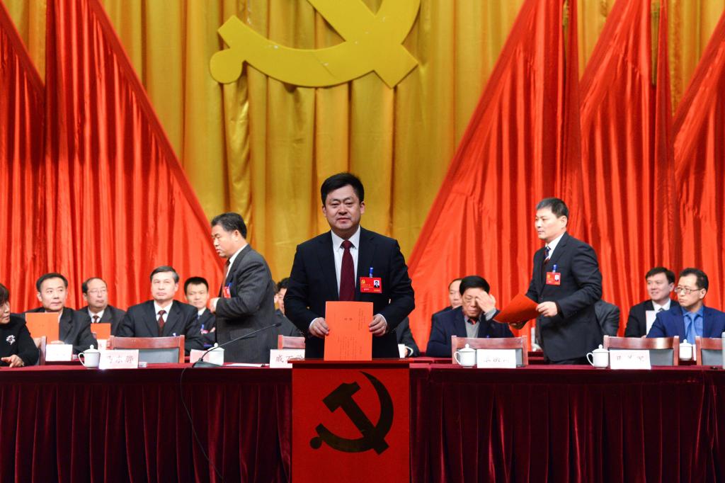 12月29日上午,在圆满完成各项议程后,中国共产党大发平台第八次代表大会在大学生活动中心胜利闭幕。戚万学同志主持大会,张洪海同志致大会闭幕词。