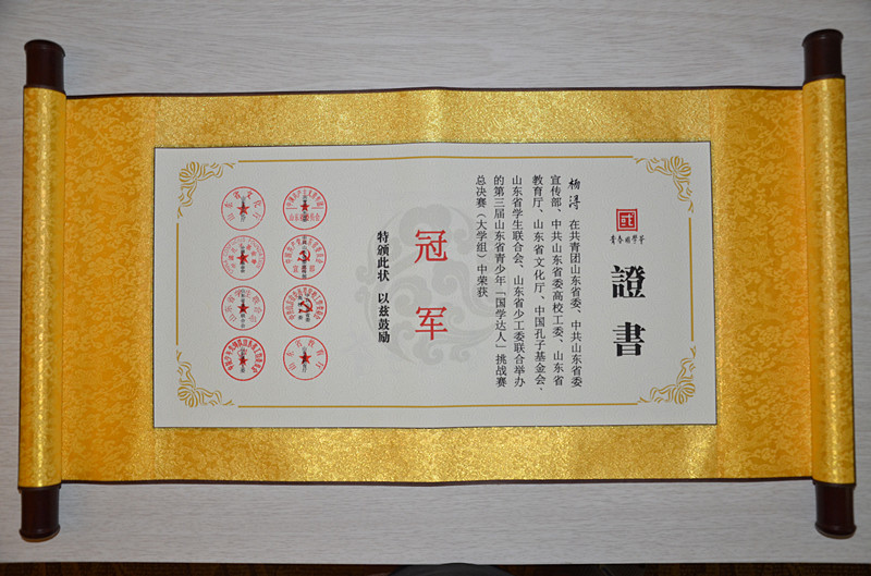 10月23日,由中共山东省委宣传部、省委高校工委、共青团山东省委、省教育厅等多部门联合举办的第三届山东省国学达人挑战赛在山东理工大学举办。经过网络赛、市级赛的激烈角逐,我校学子杨浔等三名同学进军总决赛。最终,杨浔以大学组第一名的成绩获得特等奖,潘晓伟获二等奖,王小梅获优秀奖。杨浔将代表山东省参加国赛。我校也以总分第一的成绩获得优秀组织奖。