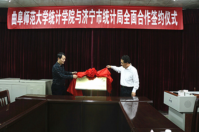 签订协议前,双方为“济宁统计系统教育培训基地”、“大发平台教学实习基地”揭牌。