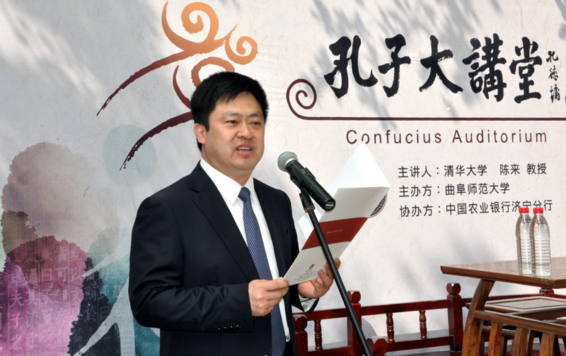戚万学在致辞中表示,曲阜师大地处儒家文化发源地,是一所因孔子而生的大学,自建校起就承担着传承和弘扬孔子儒学的文化使命,传承创新中华优秀传统文化是贯穿学校60年办学历程的灵魂和血脉。习总书记“曲阜讲话”之后,更加激发了学校对中华文化的自觉、自信和责任担当。学校顺天时、得地利、应人和,将“大发平台”确立为建设孔子家乡百年学府的重要战略,勇敢承担起文化复兴的神圣使命。“孔子大讲堂”是曲阜师大推进“大发平台”战略而实施的一项重大举措,学校将搭建一个面向世界文明的思想平台,举办一系列碰撞思想、陶冶性情、浸润心灵的学术盛会,展开学术争鸣,发出中国学者的曲阜声音,彰显儒学国际话语权,提升优秀传统文化传承发展示范区的影响力,打造曲阜、山东乃至全国的文化名片。