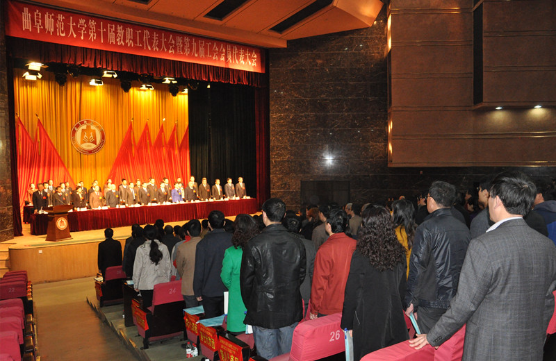 4月2日上午十时三十分,我校第十届教代会暨第九届工代会隆重开幕,并举行第一次全体会议,大会正式代表、特邀代表和列席代表参加会议。省教育工会主席宋志明,济宁市总工会党组书记、常务副主席岳秀银,大会主席团全体成员和学校老领导代表在主席台就坐。会议由副校长康淑敏主持。