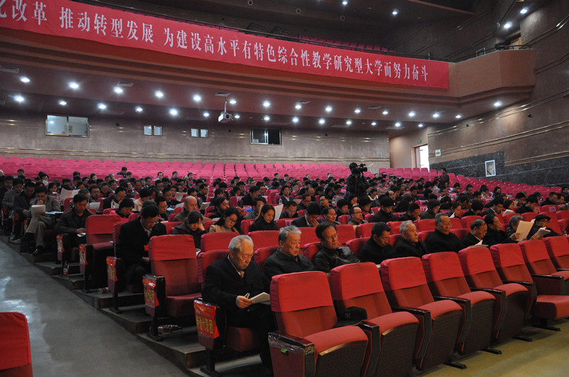 戚万学从六个方面总结了我校过去一年取得的成绩:推动学校发展战略转型,综合改革迈出新步伐;坚持教学中心地位,教育教学质量有新提升;坚持协同创新,科研成果取得新突破;坚持引育并举,人才队伍建设取得新成效;坚持开放办学,对外交流合作取得新进展;各项事业协调发展,和谐校园建设呈现新局面。