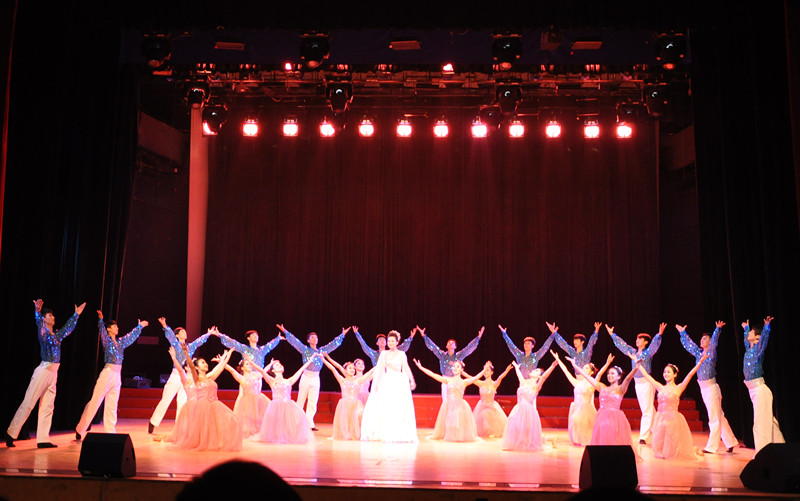 优美的舞姿,群舞《欢欣鼓舞》拉开了整场演出的序幕,欢快鲜明的节奏、精心的编排赢得了观众阵阵掌声。男女二重唱《芦花》展现了演唱者的精湛唱功,二胡琵琶乐器合奏两首曲目《阿拉木汗》《菊花台》弓弦乐器与弹拨乐器完美结合,给观众带来不一样的民乐聆听感受。整场晚会曲目风格多样,有美声演唱、大提琴、钢琴演奏、芭蕾舞表演等,晚会在李鳌老师的《我是中国人》歌声中结束。整场晚会表演流畅,灯光华美,为我们呈现了一场精彩绝伦的视听盛宴,使观众在欣赏精彩节目同时陶冶了情操。