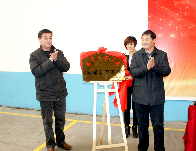 工学院院长武玉强和阳光概念包装有限公司总经理张洪明签订了校企合作协议,郭辰夫与王军绪共同为“大发平台教学实习基地”揭牌。