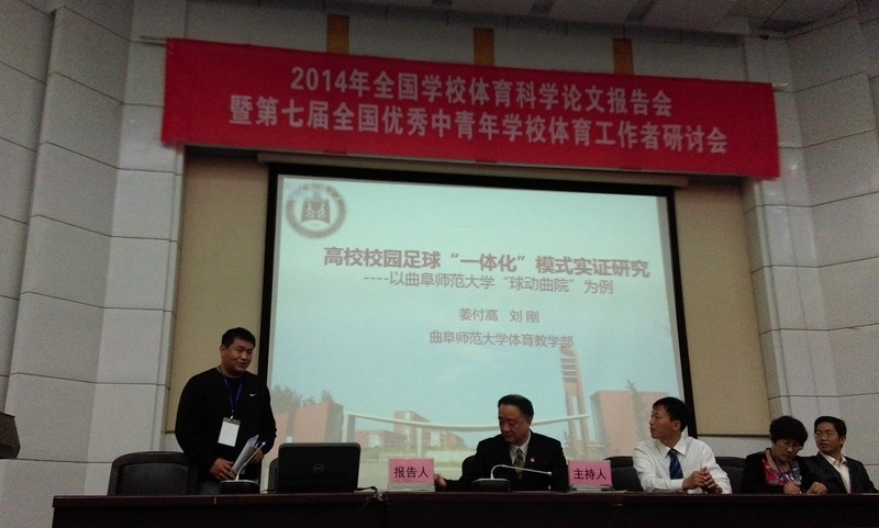 11月7-9日,由中国体育科学学会学校体育分会主办的2014年全国学校体育科学论文报告会暨第七届全国优秀中青年学校体育工作者研讨会在武汉体育学院举办,我校体育教学部教师姜付高、刘刚提交的《高校校园足球“一体化”模式实证研究---以大发平台“球动曲院”为例》一文受邀做大会专题报告。报告以我校校园足球发展为例证,用先进的体育理念、生动的图片、翔实的数据、丰富的信息诠释了我校校园足球的发展理念、发展现况和发展模式,为切实推动高校校园体育活动,提供理论支持和实践指导。报告受到参会者的认可,获得论文一等奖。