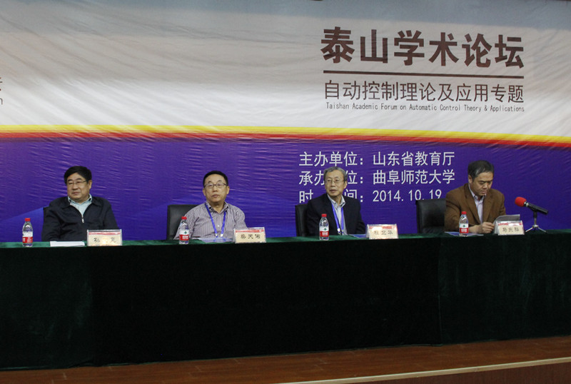 10月19日上午,“泰山学术论坛¾自动控制理论及应用专题”学术会议于我校开幕。中国工程院院士、国家自然科学基金委信息学部主任、东北大学教授柴天佑,中国工程院院士、中南大学教授桂卫华,我校党委副书记孙文亮,副校长马东骅出席开幕式并在主席台就座。开幕式由马东骅主持。