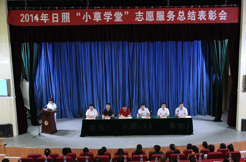 9月16日下午,2014年“小草学堂”志愿服务总结表彰会在日照校区举行。校党委常委、纪委书记郭辰夫,共青团日照市委书记袁利强,学生工作办公室、校区管委会、校团委等单位负责人出席会议,各区县团委分管领导、23处“小草学堂”负责人、“小草学堂”支教团全体志愿者及各学院志愿者代表参加了会议。会议由共青团日照市委副书记王法强主持。